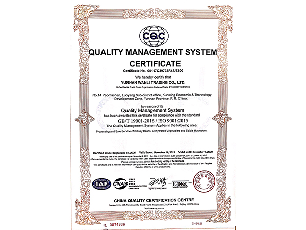 萬力貿易榮獲云南出口農產品檢驗檢疫分類管理一類企業